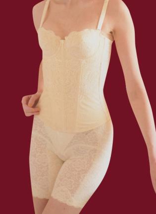 腹部は裏からのパワーネットの当て 布と表側の伸びないレースとの組み合わせでしっかりとサポートされています。