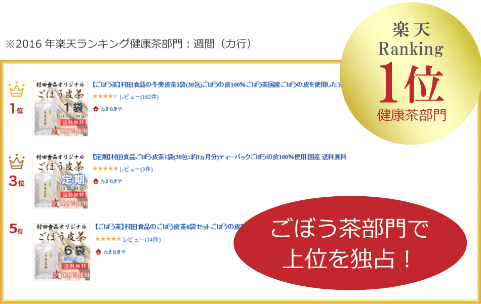 ***** ごぼう皮茶のお得なセットや定期コース ***** ごぼう茶:1袋購入販売価格:1,512円 ごぼう茶:3袋セットセット価格:4,236円 ごぼう茶:定期定期コース価格 商品名 村田食品のごぼう皮茶 ティーパック 内容量 3包(1.5g×3包) 原材料 ごぼうの皮100%※残留農薬・放射線検査は製造ロット毎に検査済み 成分表 エネルギー:0kcal/たんぱく質:0g/脂質:0g/炭水化物:0g/ナトリウム:0g 広告分析 会社名:有限会社村田食品 TEL:042-777-7531(0120-66-7531) 製造元:村田食品AM 原産国:国産 主に群馬県産 区分 :健康食品 健康茶 商品説明 村田食品のごぼう皮茶は、国産(群馬県)の新鮮なごぼうから外皮のみを搾取して作った健康茶です。